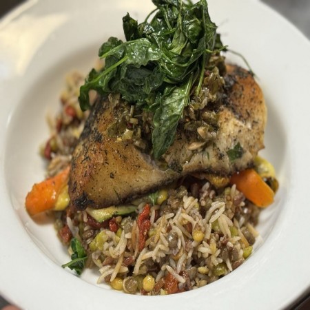 Available 11:00 AM - 4:00 PM only. Served with Baguette, Tapenade, Balsamic Vinaigrette. | Gluten Free Bread + 5.50