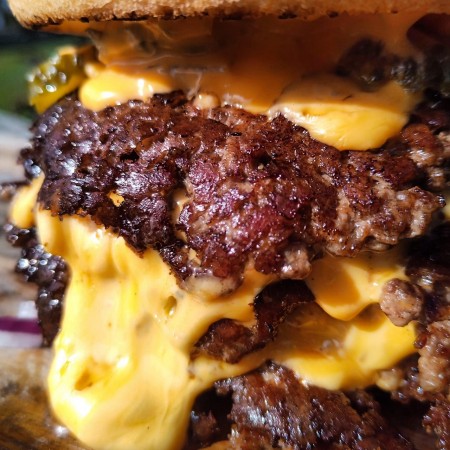 Smashed patty, cheese, pickles, awesome sauce. Served with fries